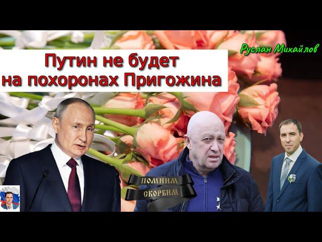 Руслан Михайлов политобозреватель сказал свое личное мнение. Путин не будет на похоронах Пригожина Евгений Пригожин Глава ЧВК Вагнер Президент Владимир Путин не планирует приезжать на похороны главы ЧВК «Вагнер» Евгения Пригожина, сообщил пресс-секретарь российского лидера Дмитрий Песков. ссылка на источник https://news.mail.ru/society/57601735/?frommail=1&utm_partner_id=442