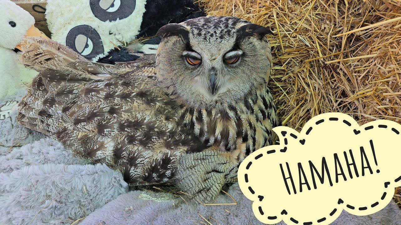 Привели Пса Кубика в большую лужу! Неясыть Кофи получил тазик с водой, а сова филин Ёль - тенёчек