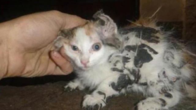 В Киеве спасли котенка, который был приклеен битумом на крыше супермаркета, теперь его не узнать