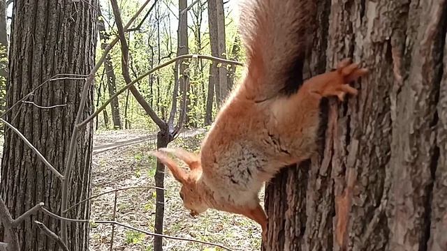 Жадная белка ест и гоняет конкурента