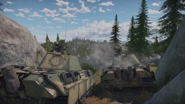 Две пантеры совершают манёвр вверх по холму War Thunder