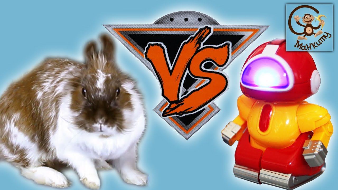 Игрушки роботы против настоящий домашний кролик. МанкиИгрушки