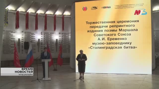 Сегодня, в знаковый для всей нашей страны день, в музей-заповедник «Сталинградская битва» передали в дар уникальное репринтное издание поэмы, написанной знаменитым советским военачальником, маршалом Андреем Еременко. В чем уникальность книги под названием «Сталинград», и какой символизм несет в себе дата 19 ноября для родственников Героя Советского Союза?
