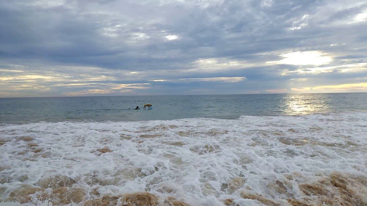Катают собаку на сёрфинге