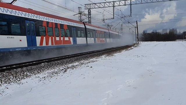 Курский ход на перегоне Красный Строитель - Щербинка, МЦД-2 23 января 2020 года, снег и скорости