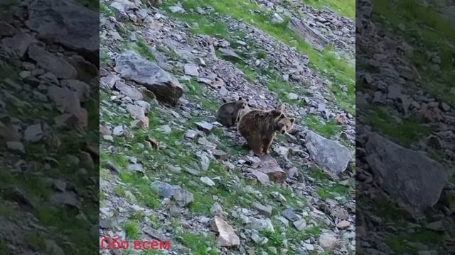 уляющий с мамой медвежонок попал в объектив камер очевидцев в горах Сочи