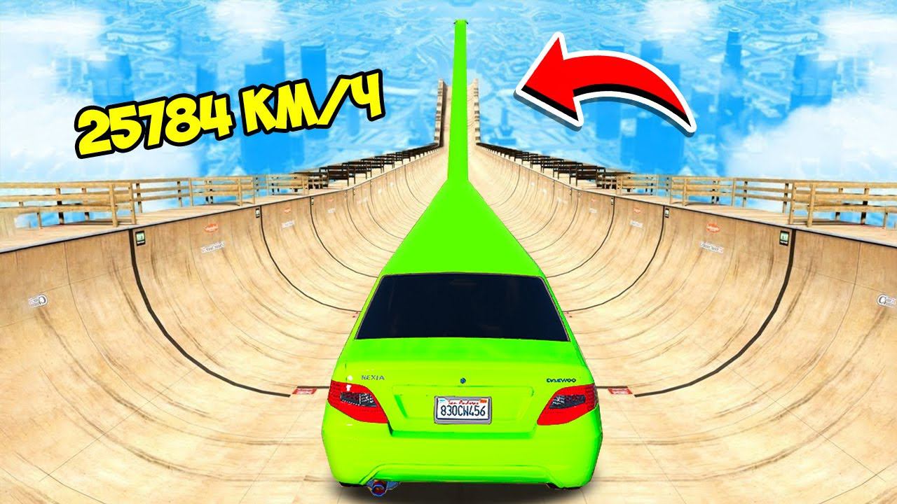СПУСК БЕЗ ТОРМОЗОВ НА САМОМ ДЛИННОМ ЛИМУЗИНЕ ДЭУ НЕКСИЯ ПО ТРАМПЛИНУ ГТА 5 МОДЫ МУРКА