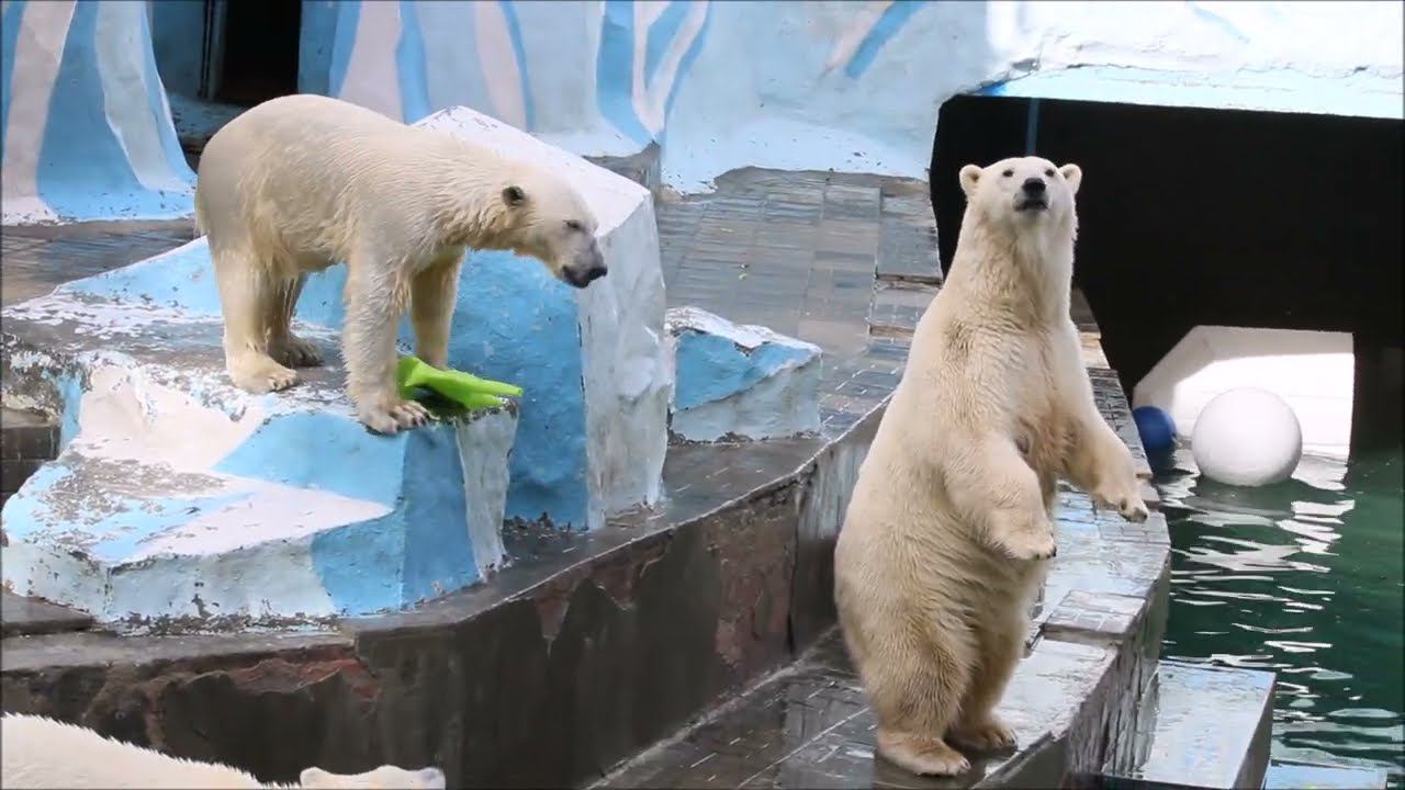 Герда родилась в Москве 20 ноября 2007 года. Её мама Симона, папа Врангель. В Новосибирск переехала 05.08.2008. В 2013 году у Герды и Кая родилась Шилка. В 2015 году она переехала в Японию. В 2015 году родился Ростик. 6 декабря 2018 года он переехал в Китай. В 2018 году родились Норди и Шайна. Данная пара молодых медведей находилась вне экспозиции зоопарка, поэтому посетители не могли их видеть. Передача молодых медведей в другой зоопарк не планируется, — ответили на запрос редакции в пресс-центре мэрии Новосибирска. Но Шайна 20 января 2024 года переехала в Ижевский зоопарк. Белые медведи одиночные животные. Как правило, миролюбивы по отношению друг к другу, но между самцами в брачный период случаются стычки. Взрослые самцы могут нападать на медвежат. Гон с марта по июнь. Продолжительность жизни — максимум 25—30 лет; в неволе рекорд долгожительства — 42 года. Вес очень крупных самцов в некоторых частях ареала 700 и даже 800 кг: есть данные о зверях весом до 1000 кг. Обычно вес меньше. Самки всегда не только меньше, но и значительно легче самцов. Так, самцы в восточной Гренландии в состоянии нормальной упитанности весят 400—450 кг, хорошо упитанные — до 500 кг, самки, даже очень сытые, здесь же редко весят больше 350—380 кг, т. е. их вес составляет около 75% веса самцов. Длина тела на 3-й день после рождения 28—32 см, средний вес — около 755 г (650—840 г). На 26-й день длина тела увеличивается незначительно — до 35—38 см, а вес возрастает до 1125—1275 г. В возрасте 60 дней самцы весят около 7 кг, самки — около 6 кг при длине тела у первых 58—60 см, у вторых 54—58 см. В возрасте 4 месяца медвежата достигают веса 22—23 кг, в 6-месячном возрасте при длине около 110 см — 40—43 кг, в 8-месячном — 58—62 кг. Длина тела в возрасте с 6 до 9 месяцев нарастает по 6—7 см в месяц. Во время зимнего сна рост почти прекращается. В зоопарке медведей кормят утром морской рыбой, хлеб с рыбьим жиром внутри, морковь, яблоки, морская капуста, яйцо дают сырое. Медвежат подкармливают молоком из соски. На ужин мясо (говядина, конина, куры или индейка). Летом и осенью арбузы, дыни, ранетки, кабачки, тыквы, огурцы. Когда показательное кормление летом бросают живую рыбу. Медвежата с медведицей находятся до 2-х лет. 16 декабря 2022 года Герда родила 2-х медвежат. И это две девочки! Имена дали 25 июня. Медвежат зовут Стрелка и Белка. Обзор вольеров белых медведей https://www.youtube.com/watch?v=mAt_b7JD0B4&list=PLGvf0V-rAHxkpGKJaWIZIUxRKgKiqV3xZ&index=17&t=0s