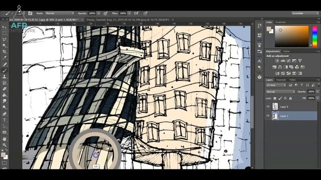 Hey guys! In this video i want to show you the time lapse of my digital colouring using Adobe Photoshop for my architectural sketches which is The Dancing House. For actual worktime, it tooks me about 2 hours 30 minutes to be completed. For tools im using hard brush with opacity adjustments and addition help by Lazy Nezumi Pro to control your brush. You can download the software on https://lazynezumi.com/ I really enjoy doing this project and i hope you like this process. Thanks for watching! Give this video a thumbs up and SUBSCRIBE! _______________________________________________________________ WATCH MORE TUTORIAL VIDEO HERE: https://youtu.be/vwwVKk1l3Cc - How to Sketch a Tropical Building : Time Lapse https://youtu.be/jSFYu-dmLf8 - How to Sketch Trees In Architectural Style | Quick Tutorial https://youtu.be/i-QL11y8SU4 - How to Draw One Point Perspective l Hacks & Tricks https://youtu.be/zv5L_n8JBMI - How to Sketch with Architectural Style l Tips and Techniques Instagram - https://www.instagram.com/afr_architecture/ Email - afr.architecture@gmail.com _______________________________________________________________ How to color in digital. How to color using Photoshop. Architectural sketch. Digital coloring tips. Easy digital coloring. Basic digital coloring. Time lapse drawing. Time lapse Photoshop. Time lapse sketches. Time lapse colouring. Digital coloring. Basic Photoshop. Fast tutorial. Pen. Pencil. Digital brush. Brush. _______________________________________________________________ Airport Lounge - Disco Ultralounge by Kevin MacLeod is licensed under a Creative Commons Attribution licence (https://creativecommons.org/licenses/by/4.0/) Source: http://incompetech.com/music/royalty-free/index.html?isrc=USUAN1100806 Artist: http://incompetech.com/