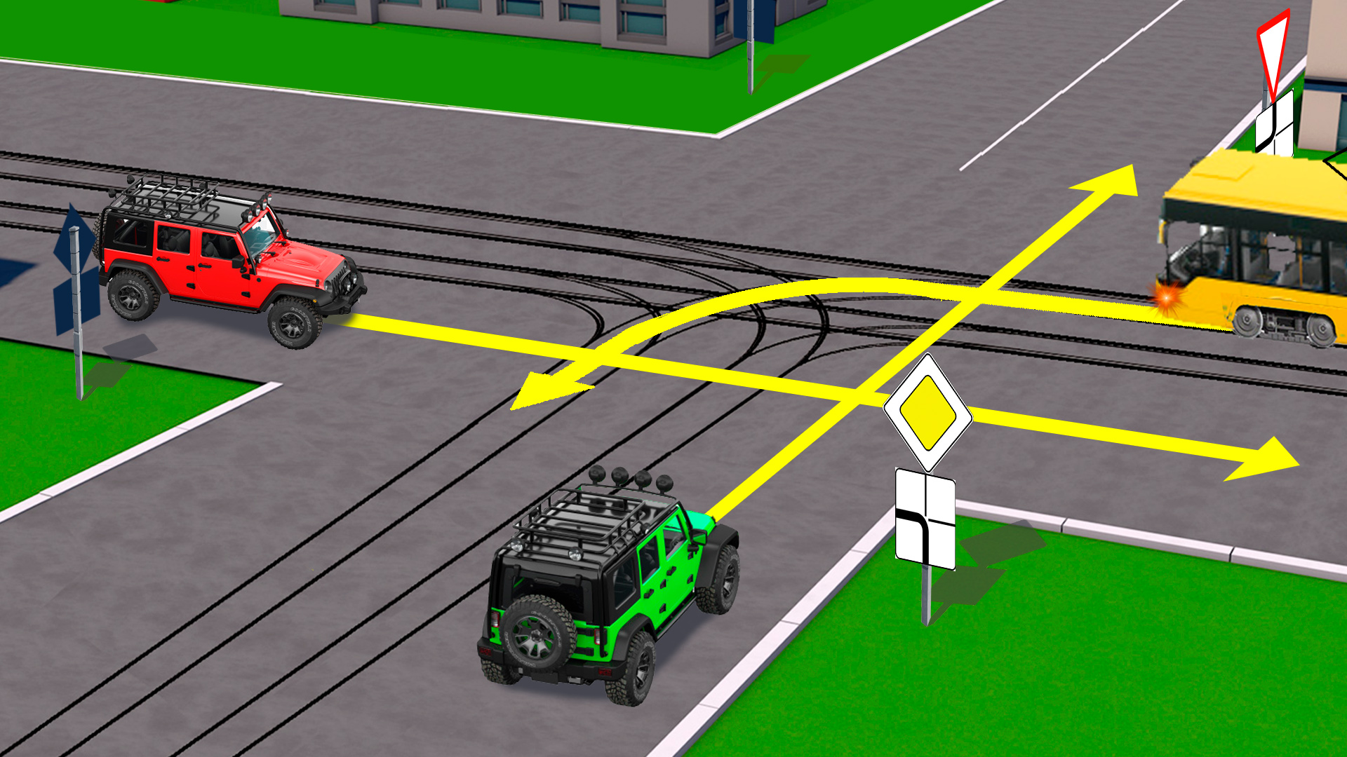Кто проедет перекресток первым?