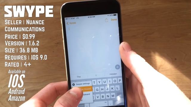 Today's Review and Walkthrough Features the Swype App by Nuance Communications. ______________________________________________________ Download Swype: IOS ~ https://goo.gl/4yx585 Android ~ https://goo.gl/qIyOC3 Fire OS ~ https://goo.gl/yhlSgP ________________________________________________________________ Follow Me: Twitter: https://Twitter.com/MalcolmBennink Instagram: https://Instagram.com/MalcolmBennink 500px: https://500px.com/MalcolmBennink Variety Channel: https://YouTube.com/Fusion101HD Music Channel: https://YouTube.com/channel/UCTyb_u7xbD9oaNxT42acGTw Gaming Channel: https://YouTube.com/SpacePotatozz ______________________________________________________ App Info: Seller | Nuance Communications Price | $0.99 Version | 1.6.2 Size | 36.8 Requires | IOS 9.0 Rated | 4+ ______________________________________________________