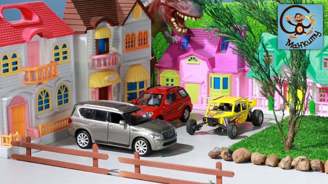Привет. В этом видео мы покажем тебе несколько мультфильмов про машинки игрушки и город в котором они живут. Экскаватор работал в карьере и наткнулся на кости Динозавра. Машинки устроили археологическую раскопку. В город игрушек пришел динозавр и распугал все машинки. Пожарная машинка придумала план как всех спасти.