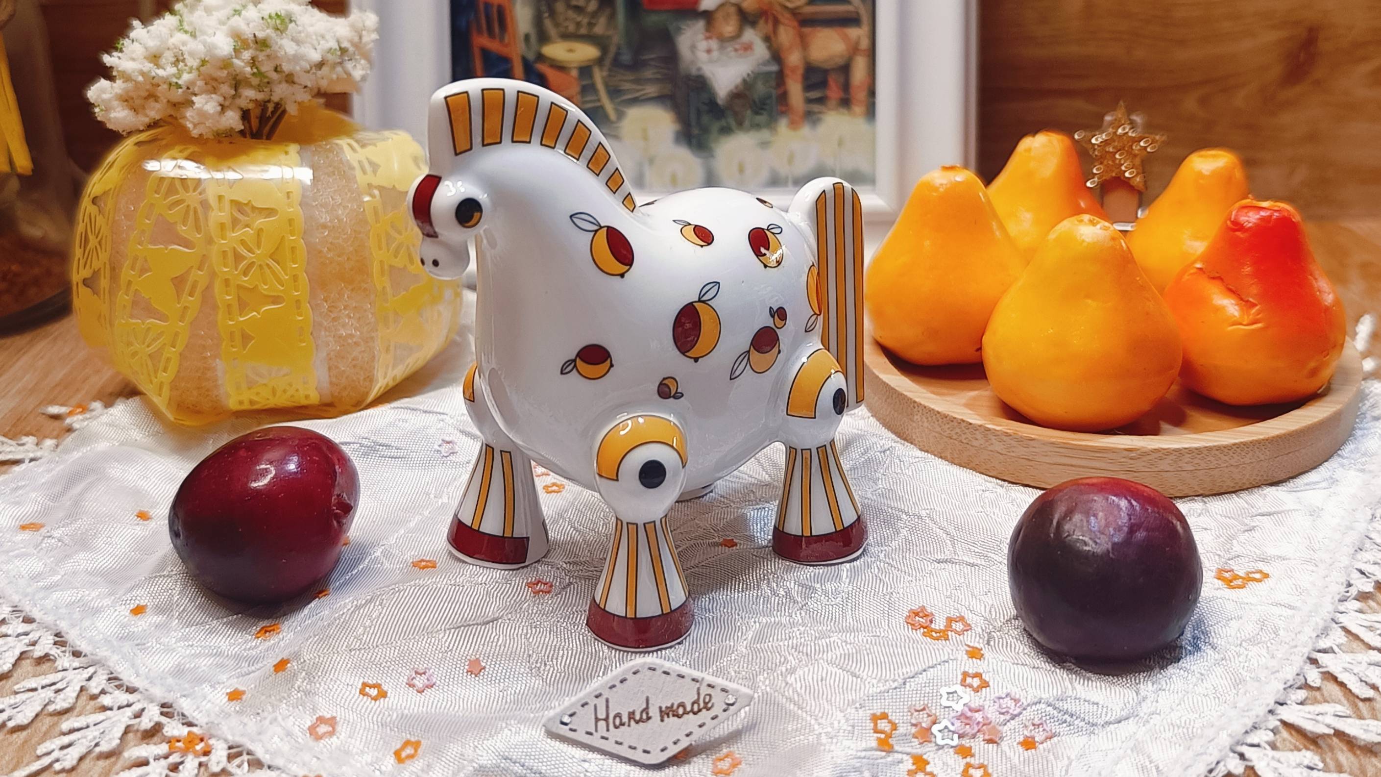 Гжельский фарфор (Гжель) Подглазурная цветная роспись Размер (ДхШхВ): 8.5х5х8 см. Вес 80 гр. Производство Россия Обращаем Ваше внимание, что роспись на всех изделиях сделана вручную. Рисунок на изделии может отличаться от изображения на фотографии. Скульптура в цвете "Коняшка Пружинка": символ веселья и удачи Представьте себе белоснежную лошадку, излучающую тепло и радость. Скульптура "Коняшка Пружинка" из гжельского фарфора с яркой подглазурной росписью — это не просто сувенир. Это маленький кусочек счастья, который может стать вашим верным спутником. Яркие яблоки, нарисованные на её теле, словно бы дарят вам солнечное настроение, а модный полосатый узор на хвосте и гриве добавляет изюминку, заставляя улыбнуться каждого, кто на неё посмотрит. Скульптура "Коняшка Пружинка" из гжельского фарфора олицетворяет гармонию традиций и современности. Этот талисман станет отличным подарком как для взрослых, так и для детей, символизируя не только год лошади, но и позитивные изменения в жизни. Поставьте её на видное место — на стол или полку, и пусть "Коняшка Пружинка" вдохновляет вас каждый день и приносит радость! Посмотрите скульптуру на сайте: https://www.gzheli.net/4015 #гжель #фарфор #сувенир #скульптура #конь #лошадь #фигурка #лошадка #миргжели
