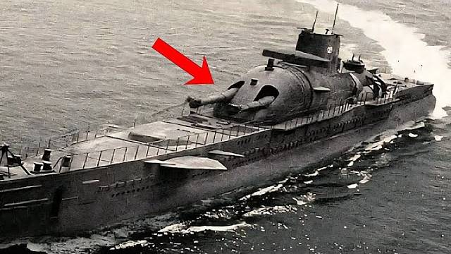 Огромная подлодка с гигантской пушкой установленной сверху