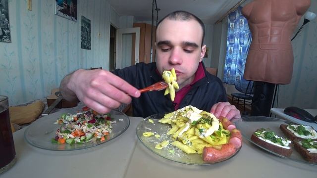 МУКБАНГ НАРЕЗКИ ЛУЧШЕЕ - МАКАРОНЫ / СОСИСКИ / БУТЕРБРОДЫ / САЛАТ / Mukbang ASMR / АСМР 13. 12. 2023