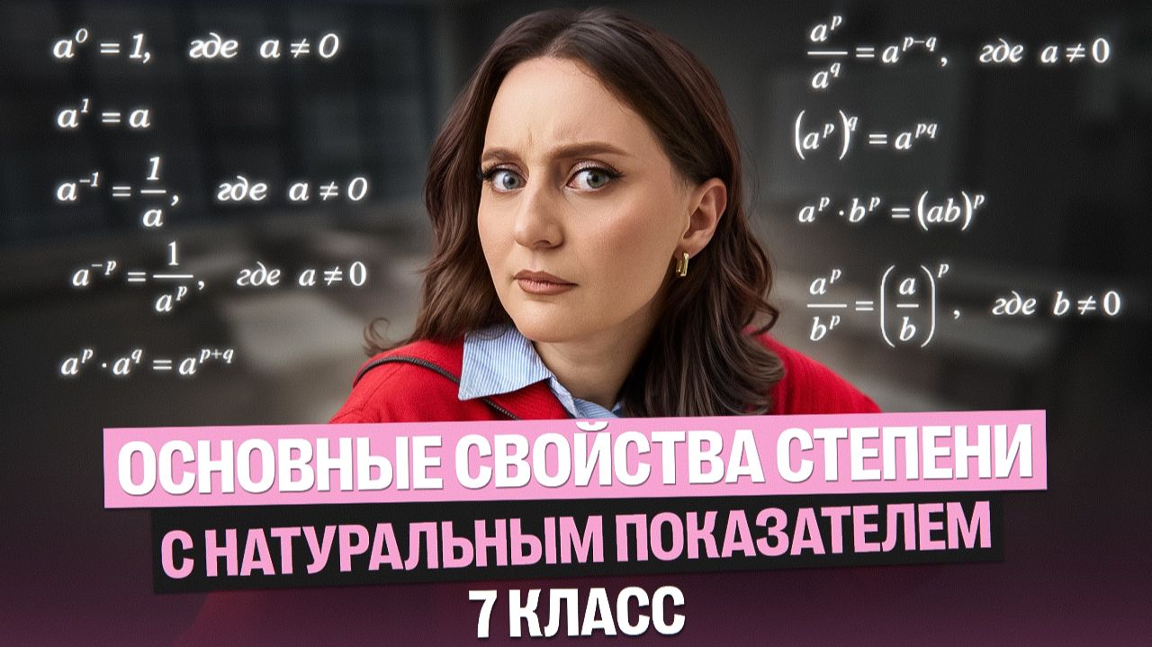 ❗️Забирай конспекты и шпаргалки в моём ТГК: https://t.me/+sMjj8RDkgjxmYWMy ❤️Если хочешь узнать подробнее о курсе, то переходи по ссылке: https://clck.ru/3QPBBw 🤙Моя группа ВК: https://vk.com/teplaya_sasha_mathem 🤙Мой ТГ: https://t.me/+sMjj8RDkgjxmYWMy 💻Наши платформы для обучения Образовательная платформа https://100points.ru/ «Банк ЕГЭ» — готовься к экзамену с правильными заданиями https://bank-ege.ru/ 00:00:00 Введение 00:00:19 Определение степеней 00:01:18 Свойства степеней 00:02:12 Умножение степеней 00:02:51 Деление степеней 00:03:48 Возведение в степень 00:04:02 Возведение произведения в степень 00:05:05 Возведение частного в степень 00:05:57 Возведение отрицательного числа в чётную степень 00:06:35 Возведение отрицательного числа в нечётную степень 00:07:01 Важность скобок #математика #огэ #огэ2026 #5класс #6класс #7класс #8класс