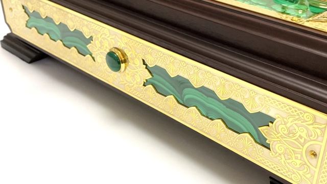 •Шахматы изготовлены в ручную по традиционным технологиям Уральских мастеров. •Материал: малахит, магнзит, долерит, бронза, латунь, никель, золото, дерево. •Техника исполнения: токарные работы по металлу, фрезеровка металла, травление, ручная рисовка, гравирование иглой, гравирование резцом, ручная подрезка, никелирование, золочение, камнерезные работы, ювелирные работы. •Содержание драгоценных металлов: никель - 20мкм, золото (999,9)-5мкм. •Размер ларца: 580*550*160мм. •Размер игрового поля: 325*325 мм. •Размер фигур: Король 35*35*110 мм, Пешка 35*35*56 мм. •Вес шахмат без упаковки: 26,5кг •Вес в упаковке: 33,5кг. •При заказе вы покупаете образец, который представлен на фото. Цена: 370 000 руб. https://radugakamnya.ru/catalog/suveniry_iz_kamnya_po_tipam/shakhmaty_i_nardy_iz_kamnya/elitnyy_shakhmatnyy_larets_ruchnoy_raboty_s_malakhitom_i_gravyuroy_zlatoust-608544/