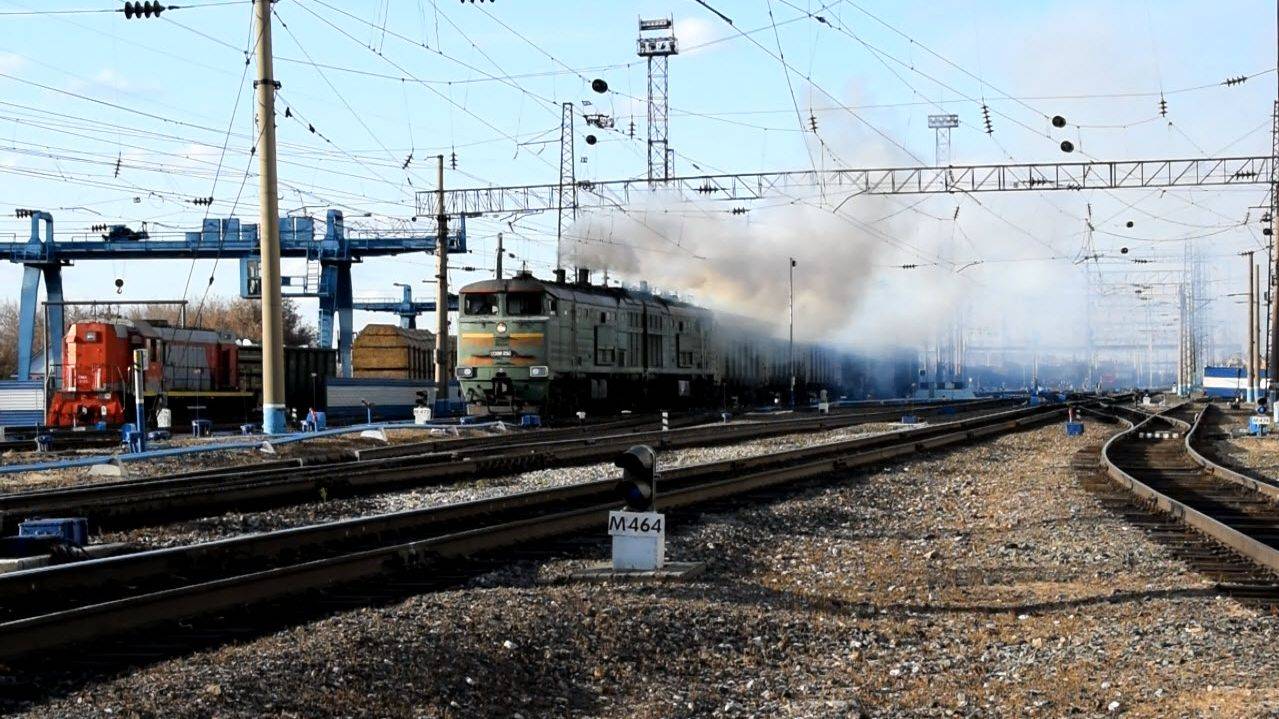 Тепловоз 2ТЭ10М-3263. Отправление на Бийск с "медведями". Звук 10Д100.