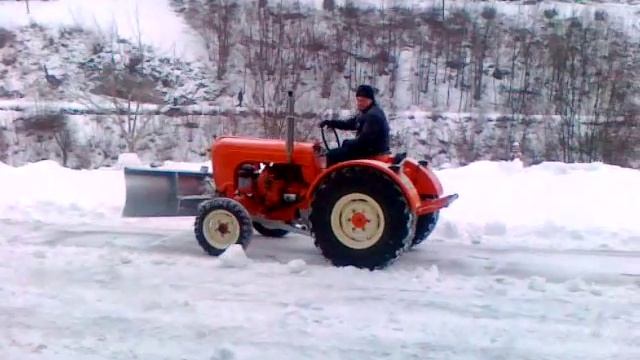My dad plowing snow with his Porsche tractor - diesel 2cly.