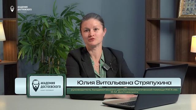 Передачу из цикла «Простая психология. Мнение эксперта», посвященную адаптации в вузе ведет Юлия Витальевна Стряпухина, руководитель Академического центра психологической помощи РХГА им. Ф.М. Достоевского. Академический центр психологической помощи Академии Достоевского предлагает бесплатную профессиональную психологическую помощь в разных жизненных ситуациях: адаптация в вузе, вопросы мотивации и личностного развития, профориентация, межличностные отношения, кризисные ситуации и так далее. Ссылка на запись: https://dikidi.net/1496054 Общие рекомендации по адаптации в вузе: 1. Пересмотрите нагрузку и расставьте приоритеты. Ориентируйтесь на требования, предъявляемые каждым преподавателем и в Академии в целом. Если что-то непонятно, лучше это сразу прояснить. 2. Общайтесь с одногруппниками в комфортном для Вас режиме, но, по возможности, активно. Предлагаем Вам рассматривать учебную группу как первый уровень Вашего профессионального сообщества. 3. Соблюдайте режим дня: качественный сон, а также баланс труда и отдыха важны для здоровья, особенно в период адаптации к новой деятельности и в стрессовых ситуациях (например, в период сессии). 4. Следите за питанием: здоровая и сбалансированная пища – залог хорошего самочувствия и высокой работоспособности. Рекомендуется не менее одного приема горячей пищи в день. 5. Не забывайте о физической активности: даже простая прогулка может поднять настроение. 6. Находите время для разрядки: общение с психологом или близкими может помочь в трудные моменты. 7. Практикуйте дыхательные техники, техники “заземления” и саморегуляции, чтобы снимать эмоциональное напряжение.