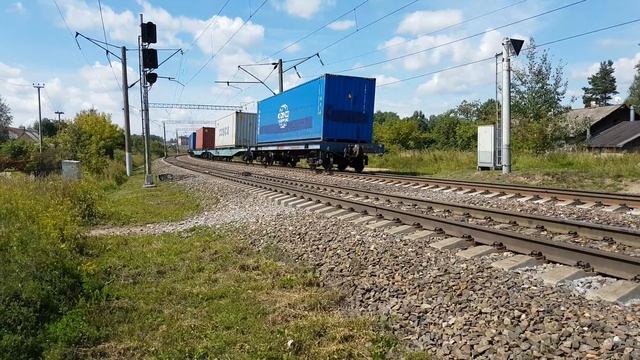 22 июля 2019 года в 11:49 станция Сафоново восточное и западное направление участок Вязьма-Смоленск Московская железная дорога VL80s-1479 with container and going on acceleration CHS8-067 with train №96 Brest-Moscow July 22, 2019 at 11:49 station Safonovo East and West direction a site Vyazma-Smolensk Moscowskaya railway
