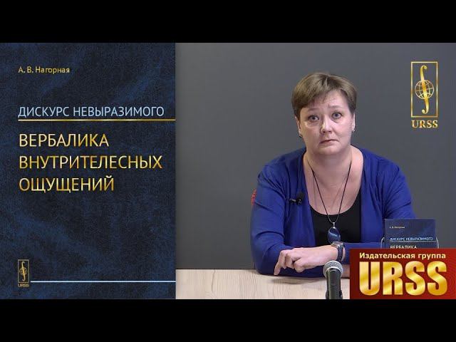 Книга: Нагорная А.В. "Дискурс невыразимого: Вербалика внутрителесных ощущений". URSS. О книге: Данная работа представляет собой опыт системного лингвистического исследования феномена интероцепции. Проблема рассматривается в широком междисциплинарным контексте с привлечением данных философии, психологии, социологии, культурологии, а также нейрологии и физиологии. В центре внимания --- процессы когнитивного моделирования и вербальной репрезентации интероцептивных (внутрителесных) ощущений. Определяются феноменологические свойства ощущений, релевантные в лингвокогнитивной перспективе, описываются когнитивные структуры, в которых фиксируются результаты интероцептивного опыта, анализируются способы репрезентации этих структур на лексическом и синтаксическом уровне, изучается направляющая и регулирующая роль культуры в формировании матрицы интероцептивных значений. Рассматривается проблема исторической изменчивости и индивидуальной вариативности средств выражения субъективного интероцептивного опыта. Книга рассчитана на лингвистов, но может оказаться полезной и для специалистов в области культурологии, социологии и психологии, а также широкого круга читателей, интересующихся проблемами человеческой телесности. Об авторе: Доктор филологических наук, доцент. Профессор Департамента иностранных языков Национального исследовательского университета "Высшая школа экономики". Автор более 120 научных и учебно-методических работ, в том числе монографий "Дискурс невыразимого: Вербалика внутрителесных ощущений" (М.: URSS) и "Лингвосенсорика как перспективное направление современных лингвистических исследований" (М., 2017). Область научных интересов: междисциплинарные и трансдисциплинарные исследования, корпореальная лингвистика, лингвосенсорика, когнитивная лингвистика и метафорология, проблемы лингвокреативности. Купить книгу: https://urss.ru/245658?src=youtube
