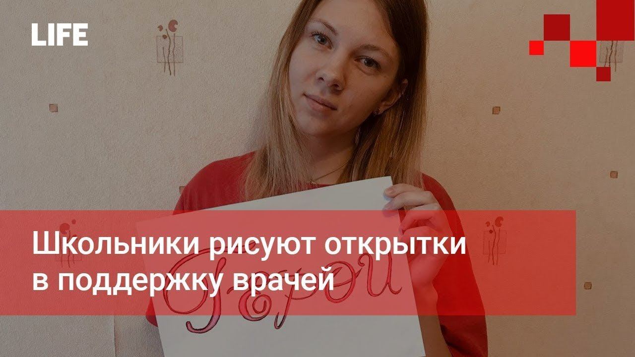 Школьники рисуют открытки в поддержку врачей