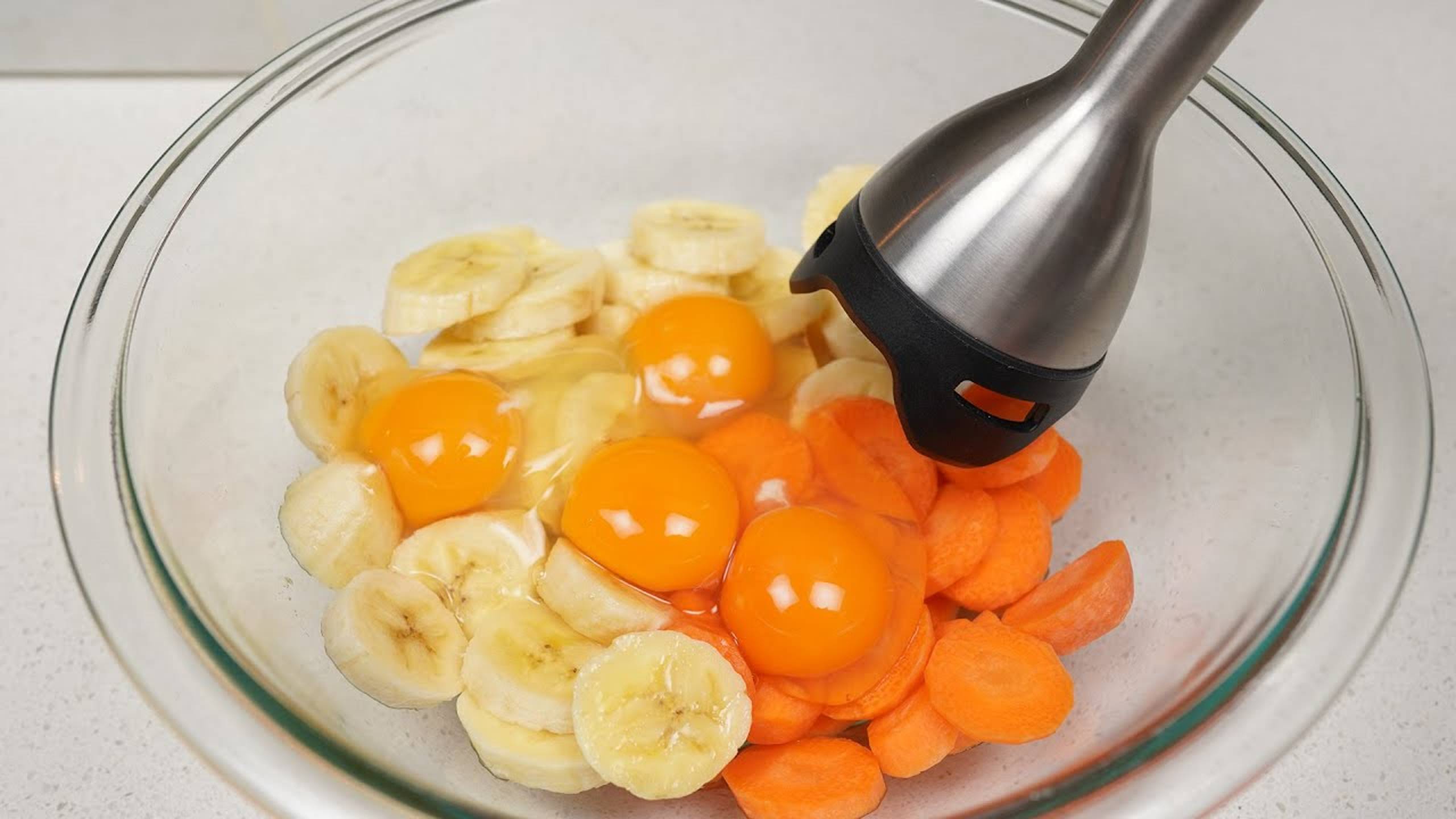 Взбить бананы с морковью и яйцом и вы останетесь довольны результатом.