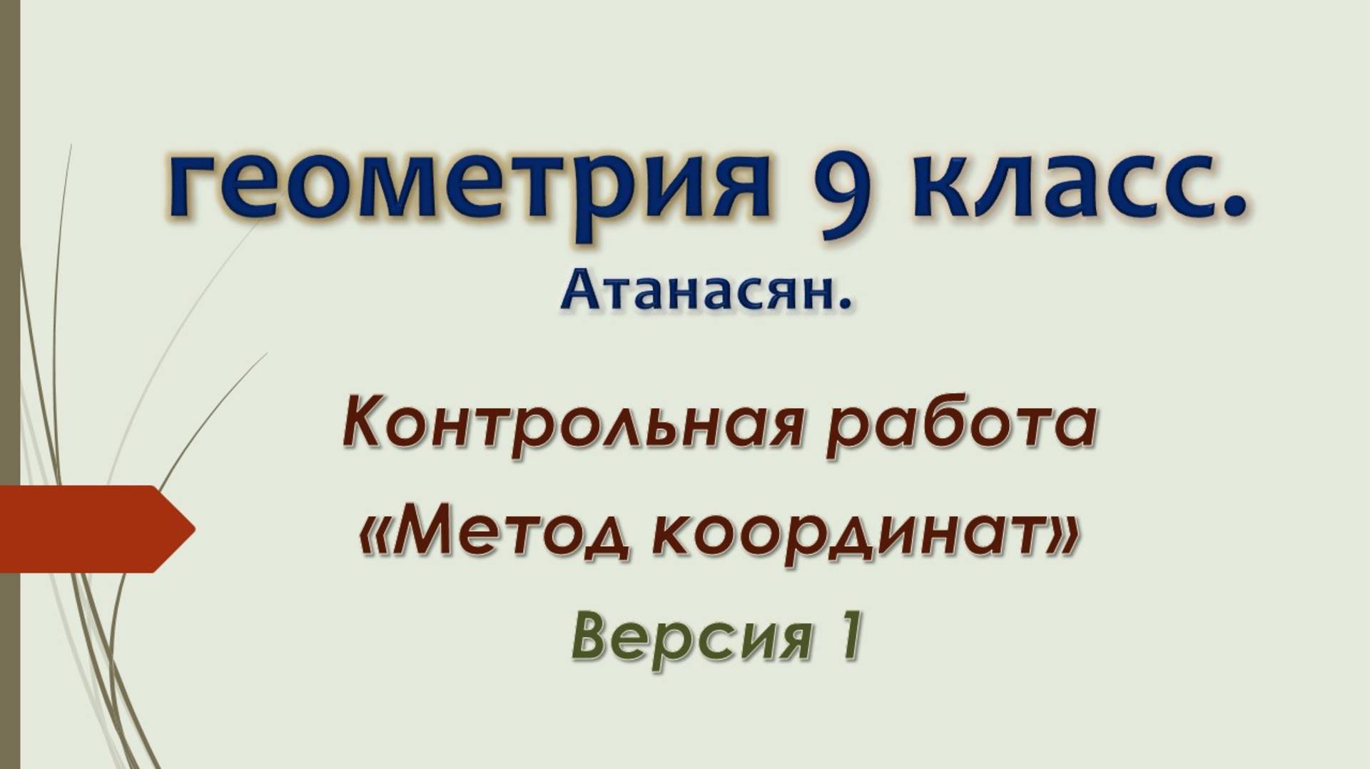Геометрия 9 класс. Контрольная Метод координат. Версия 1.