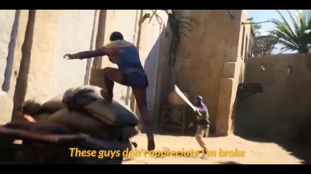 Assassin’s Creed Basim running away from guards, but with Aladdin music