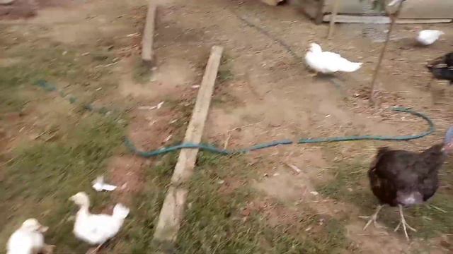 Фасад дома.Утка выводит утят.