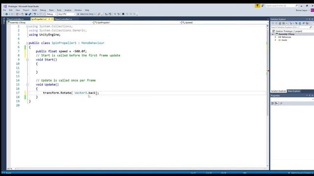 How to make a spinning propeller inside Unity Game engine
