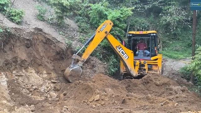 Вырубка рыхлого гравийного склона и создание холмистой дороги