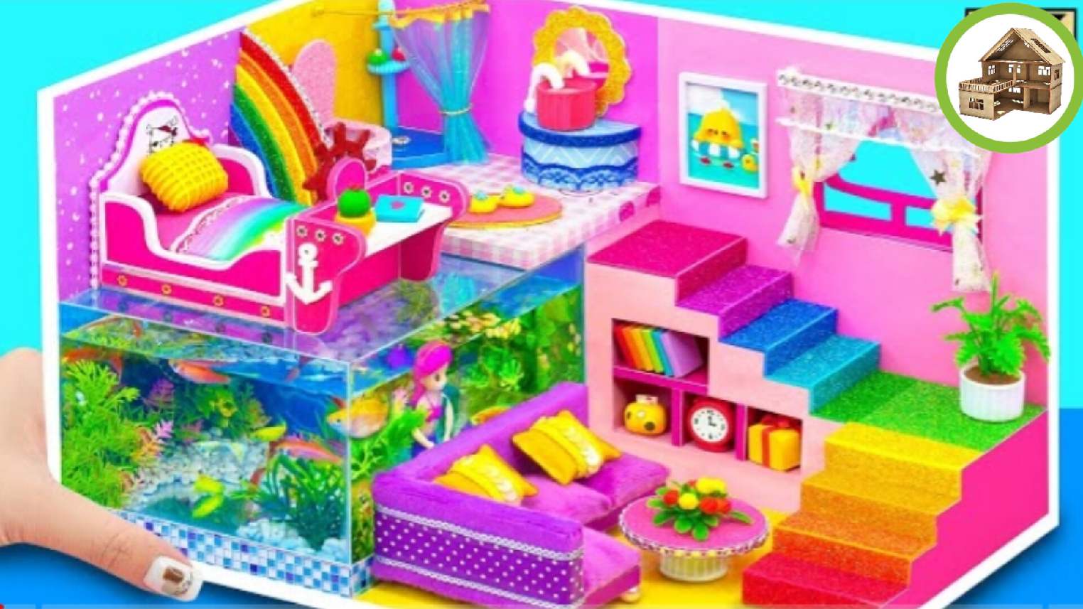 Красочный миниатюрный домик с аквариумом под из картона #47