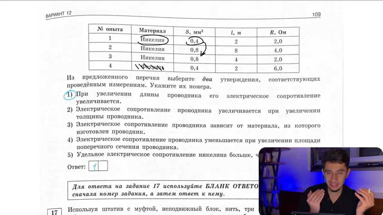 Ученик провёл эксперимент по изучению электрического сопротивления металлического - №28672