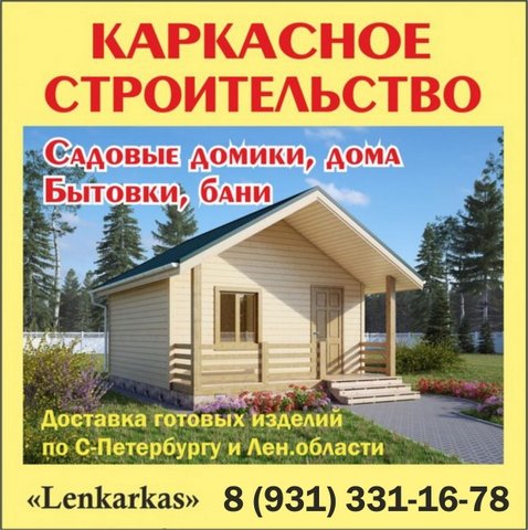 Компания "ЛенКаркас": загородное каркасное строительство садовых домиков, бань, бытовок в Санкт-Петербурге и Ленинградской области. Основа нашей деятельности - производство садовых домиков, бытовок и бань. В компании "Lenkarkas" вы можете получить доступное решение для загородной жизни: - Надежный фундамент - Функциональная планировка - Эргономичный дизайн - Панорамные окна. - Экологически безопасные материалы. - Современный утеплитель позволяет проживать в постройке круглый год. - Возможность свободно перевозить изделие в другое место. Постройка может комплектоваться открытой и закрытой террасой. Любая планировка и отделка на ваш вкус! У нас широкий комплекс услуг. и низкая цена, поскольку мы - производители. Работаем без скрытых доплат. Необходимые материалы закупаем только у проверенных поставщиков. Возможна оплата в рассрочку. Наша компания доставляет готовые изделия по Санкт-Петербургу и Ленинградской области и производит сборку на участке. Фотографии и цены смотрите на нашем САЙТЕ: www.lenkarkas.ru/ Адрес: ул. Индустриальная, д. 30, Соржа-Старая производственно-складская зона, Заневское городское поселение, Всеволожский р-н, Ленинградская обл. (59.916356, 30.618122) Тел.: 8 (931) 331-16-78 E-mail: lenkarkas78@gmail.com В Интернете (в поисковиках) нас находят, в частности, по таким словам: строительство садовых домиков Ленинградская область, строительство бань Ленинградская область, строительство бытовок Ленинградская область, строительная компания Ленинградская область. #строительствосадовыхдомиков #Ленинградскаяобласть #строительствобань #СанктПетербург #строительствобытовок #каркасноестроительство #загородноестроительство