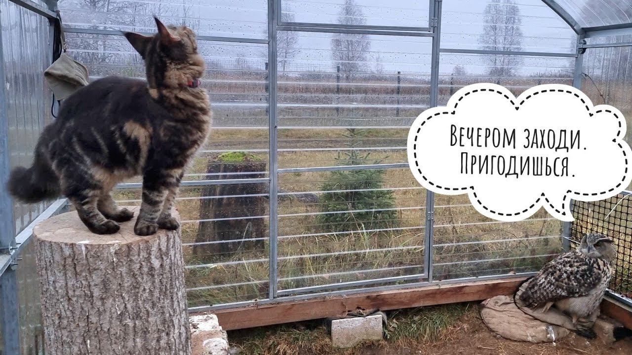 Морозные дни пока отменили, лёд растаял. Пока нет снега, вернули сове водичку для питья и купания. Кошка Морошка очень переживала, что я что-то делаю без неё. А вдруг непрпвильно?! Зашла, всё проверила, вроде, осталась довольной. Сова Ёль отнеслась благосклонно к нашему визиту. #owl #owlhouse #cat