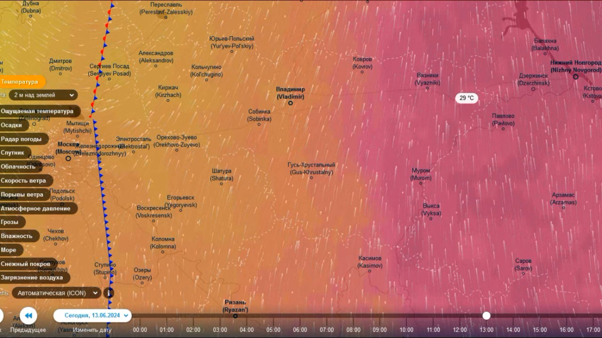 13.06.2024 Владимирская область разделена на жару и прохладу. Погода на карте
