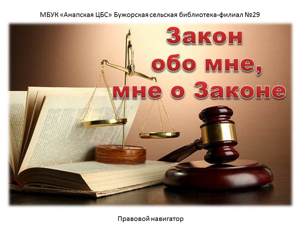 «Ничто мы так плохо не знаем, как то, что каждый должен знать, - закон» /О.Бальзак/. Закон – нормативно-правовой акт, содержащий общеобязательные правила поведения общественной жизни, принятый правительством. В нашем государстве, как и в любом другом, существует основной закон, по которому мы живем. Законы записаны в Конституции – основном законе государства. Подготовлено ведущим библиотекарем Бужорской сельской библиотеки-филиала №29 МБУК «Анапская ЦБС» Яценко Е.Ю.
