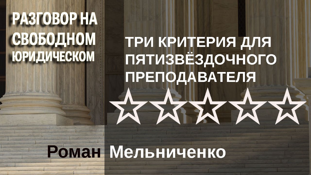 Спикер Роман Мельниченко Формирование рейтингов крайне сложное и редко кому дающееся занятие. В качестве редчайших удачных примеров можно привести рейтинг ресторанов Мишлен (Le Guide Michelin, Le Guide Rouge). Большинство же подобных ретингования потерпело неудачу. Для того, чтобы создать влиятельный рейтинг преподавателей юридических дисциплин, необходимо принять критерии для формирования самих критериев. В сообщении Романа Мельниченко будут предложены следующие критерии: - достаточность; - русская проверка; - актуальность.