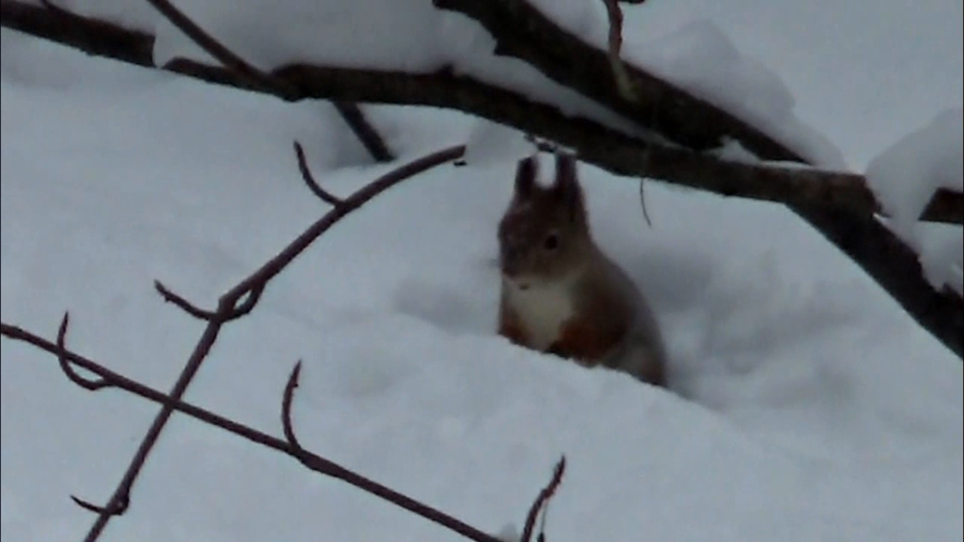 Белочка заглянула в свой зимний тайник