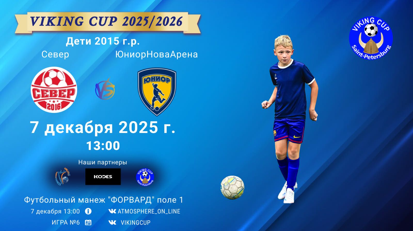 VIKING CUP среди команд 2015 г.р. (U10), Поле 1 7 декабря 2025 САНКТ-ПЕТЕРБУРГ, ФЦ "Форвард" ФК "Север" - ФК "ЮниорНоваАрена"/VIKING CUP, Игра №6, 07-12-2025 13:00