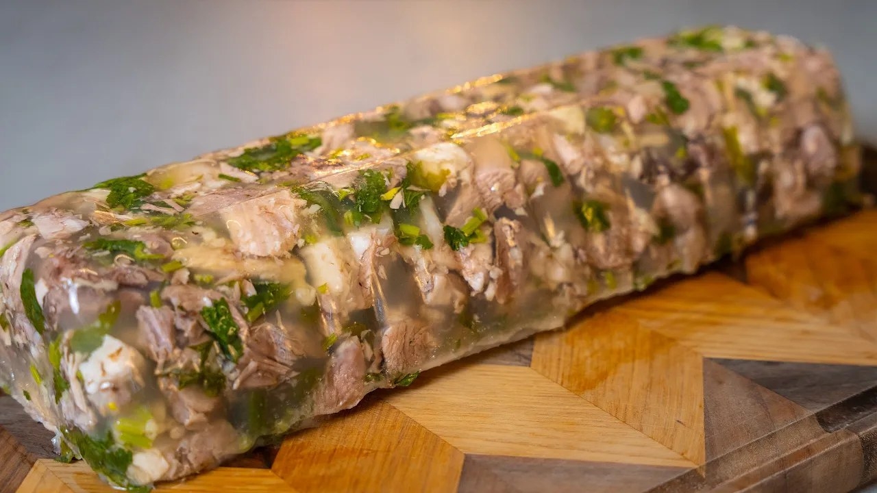 Холодец по-грузински Мужужи მუჟუჟი 🍲🍲🍲 ➊ Рулька - 2 кг ➋ Свиная нога - 700 г ➌ Морковка - 1 шт. ➍ Лук - 1 шт. ➎ Перец душистый - 5 горошин ➏ Перец черный - 15 горошин ➐ Лавровые листья - 3 средних листа ➑ Уксус винный - 120 мл ➒ Соль - по вкусу Соус ➊ Аджика - 20 г ➋ Кетчуп - 300 г ➌ Лук - 50 г ➍ Чеснок - 10 г ➎ Кинза - 20 г 🍲🍲🍲 00:00 - начало 00:15 - подарки для вас 01:24 - подготавливаем мясо и бульон 04:51 - соус для холодца 06:42 - сварили мясо 07:31 - процеживаю бульон 08:30 - нарезаем мясо и кинзу 10:26 - выкладываю в форму 12:39 - холодец готов #кухнясакцентом #холодецпогрузински