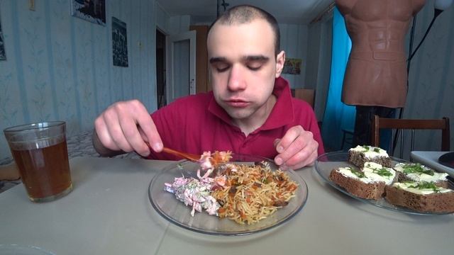 МУКБАНГ УЗБЕКСКИЙ ПЛОВ С МЯСОМ САЛАТ ОВОЩНОЙ / БУТЕРБРОДЫ / ОБЖОР/ EATING Mukbang / АСМР / ASMR