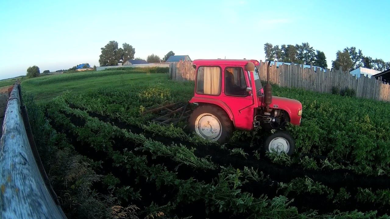 Приминаю картошку. Третье окучивание по сырому. Немного переросла.