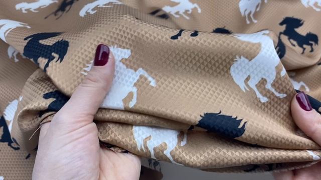 Шёлк песочного цвета с принтом чёрно-белые кони 46569