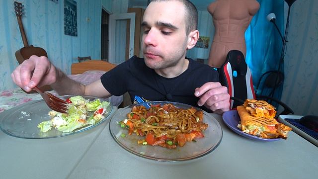 МУКБАНГ КОТЛЕТА ПО КИЕВСКИ / СПАГЕТТИ С СЫРНЫМ СОУСОМ / ВЫПЕЧКА - СЛОЙКА С КАПУСТОЙ / ОБЖОР / EATING Mukbang ASMR АСМР