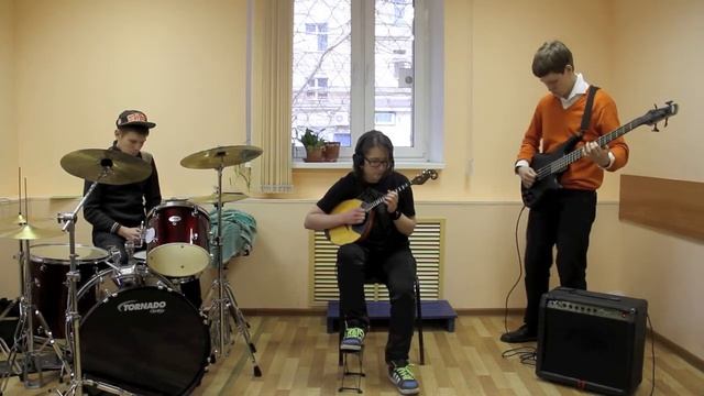 Владимир Крамаренко (Бас гитара) Софья Калинина (домра) Максим Соин (ударные)
