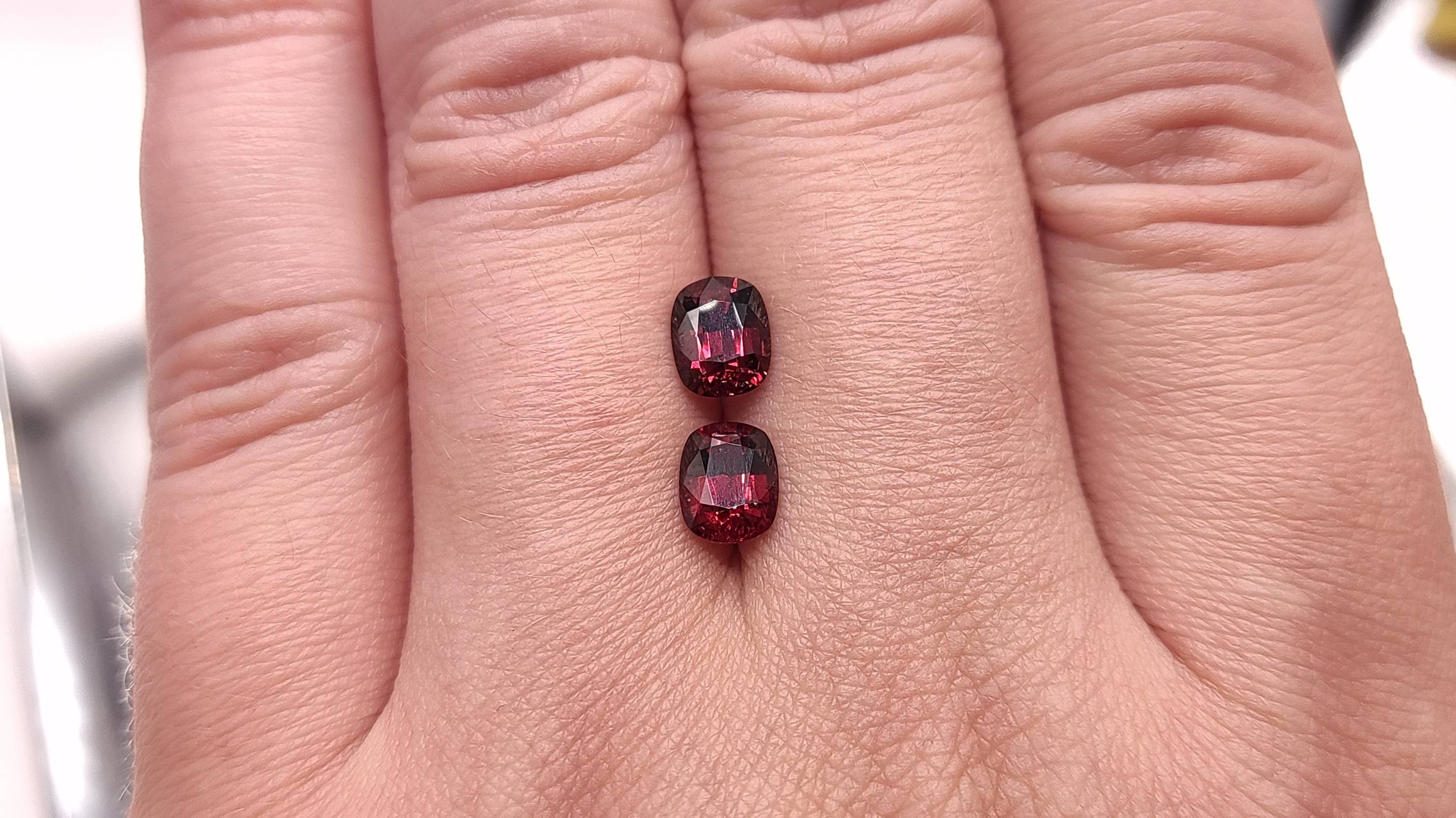 Шпинель красная пара, кушон 2.13 ct. Мьянма + гемм. заключение