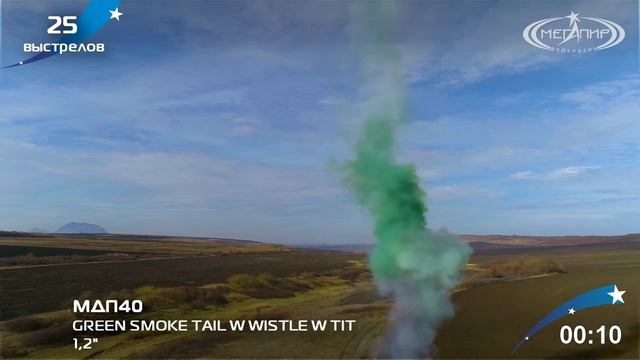 МДП40 Дневная зеленая батарея салютов 25*1,2 ( треск+свист)